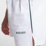 Prenda inferior de gabardina blanca con vivos verde inglés y terminación con tajos laterales. Costuras reforzadas en zonas estratégicas. Cintura elastizada. Bolsillo trasero aplicado. (Composición: 65% Poliéster 35% Algodón).